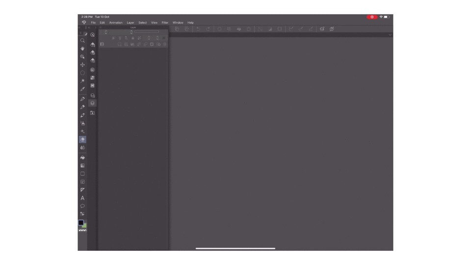 3. On the left side, the tool bars along with other buttons such as the colour wheel and layers are located here.